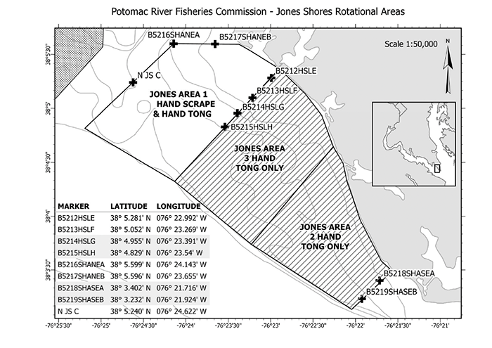 Northern boundary - is the jurisdictional line of the PRFC and Maryland DNR at the mouth of Breton Bay as marked with PRFC markers “PRM3A, 3B and 3C: and spar buoys “3D” and “3E.”